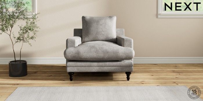 6.12.1 Buy Hutton Deep Relaxed Sit Armchair Plush Chenille Light Grey Country Turned - Dark from the Next UK online shop Click here to use our accessible website