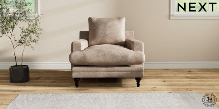 6.12.1 Buy Hutton Deep Relaxed Sit Armchair Plush Chenille Mid Natural Country Turned - Dark from the Next UK online shop Click here to use our accessible website