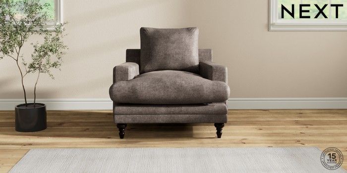 6.12.1 Buy Hutton Deep Relaxed Sit Armchair Plush Chenille Mink Brown Country Turned - Dark from the Next UK online shop Click here to use our accessible website