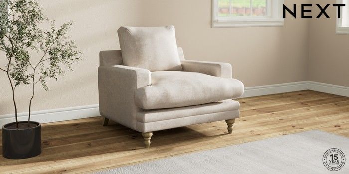 7.0.3 Buy Hutton Deep Relaxed Sit Armchair Plush Chenille Oyster Country Turned - Light from the Next UK online shop Click here to use our accessible website