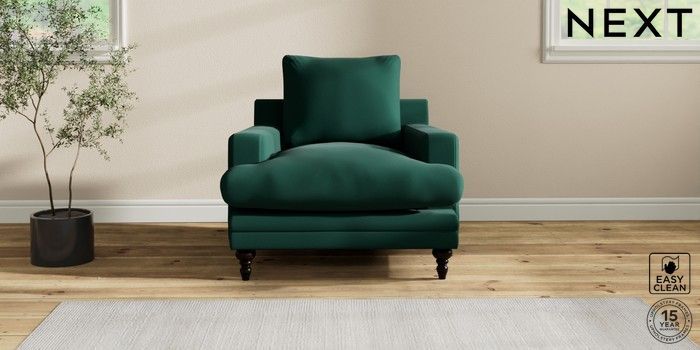 6.12.1 Buy Hutton Deep Relaxed Sit Armchair Plush Velvet Easy Clean Bottle Green Country Turned - Dark from the Next UK online shop Click here to use our accessible website