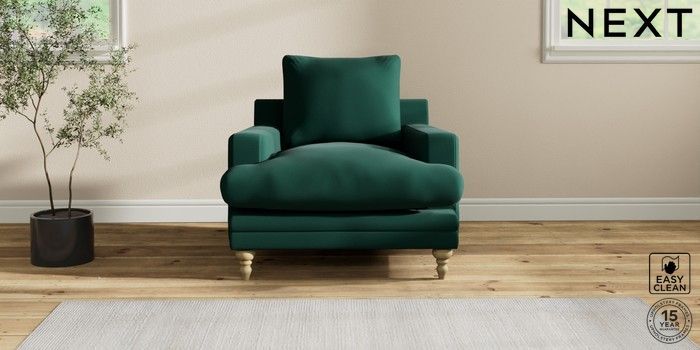 6.12.1 Buy Hutton Deep Relaxed Sit Armchair Plush Velvet Easy Clean Bottle Green Country Turned - Light from the Next UK online shop Click here to use our accessible website