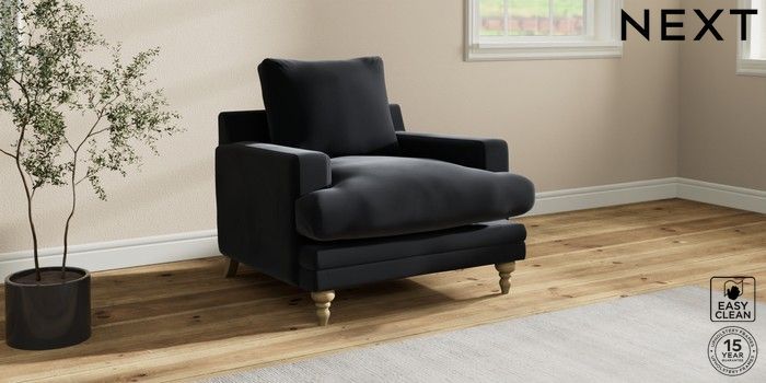 7.0.3 Buy Hutton Deep Relaxed Sit Armchair Plush Velvet Easy Clean Charcoal Grey Country Turned - Light from the Next UK online shop Click here to use our accessible website