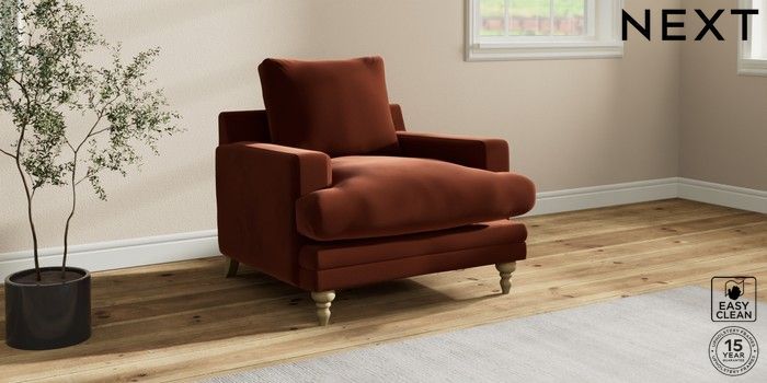 7.0.3 Buy Hutton Deep Relaxed Sit Armchair Plush Velvet Easy Clean Ginger Orange Country Turned - Light from the Next UK online shop Click here to use our accessible website