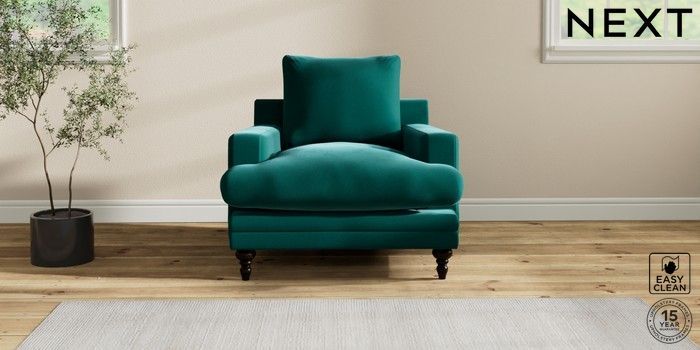 6.12.1 Buy Hutton Deep Relaxed Sit Armchair Plush Velvet Easy Clean Juniper Green Country Turned - Dark from the Next UK online shop Click here to use our accessible website