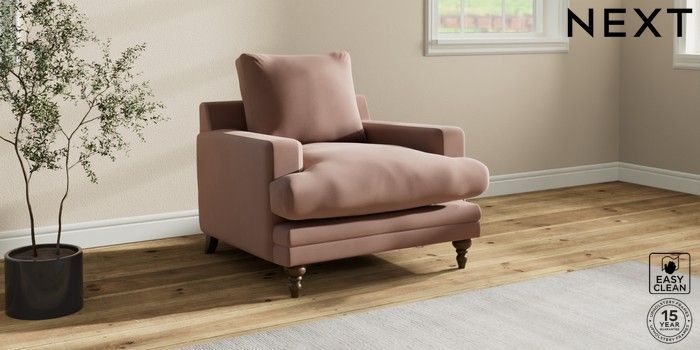 7.0.3 Buy Hutton Deep Relaxed Sit Armchair Plush Velvet Easy Clean Mid Natural Country Turned - Mid from the Next UK online shop Click here to use our accessible website