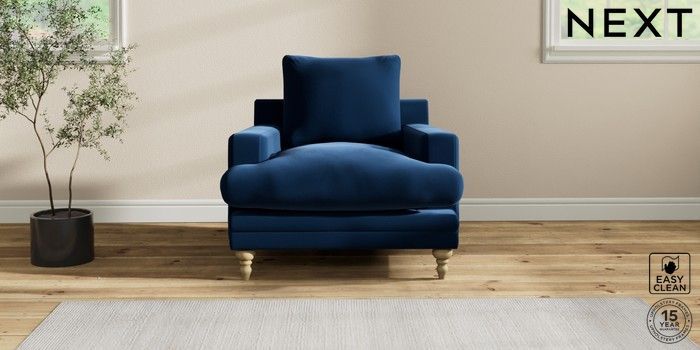 6.12.1 Buy Hutton Deep Relaxed Sit Armchair Plush Velvet Easy Clean Navy Blue Country Turned - Light from the Next UK online shop Click here to use our accessible website