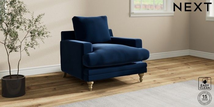 7.0.3 Buy Hutton Deep Relaxed Sit Armchair Plush Velvet Easy Clean Navy Blue Country Turned - Light from the Next UK online shop Click here to use our accessible website