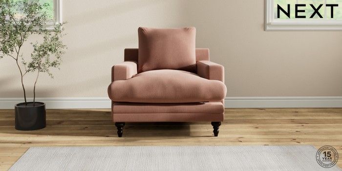 6.12.1 Buy Hutton Deep Relaxed Sit Armchair Relaxed Linen Look Light Rust Brown Country Turned - Dark from the Next UK online shop Click here to use our accessible website