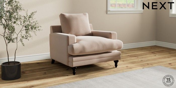 7.0.3 Buy Hutton Deep Relaxed Sit Armchair Relaxed Linen Look Mid Natural Country Turned - Dark from the Next UK online shop Click here to use our accessible website