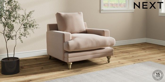 7.0.3 Buy Hutton Deep Relaxed Sit Armchair Relaxed Linen Look Mid Natural Country Turned - Light from the Next UK online shop Click here to use our accessible website