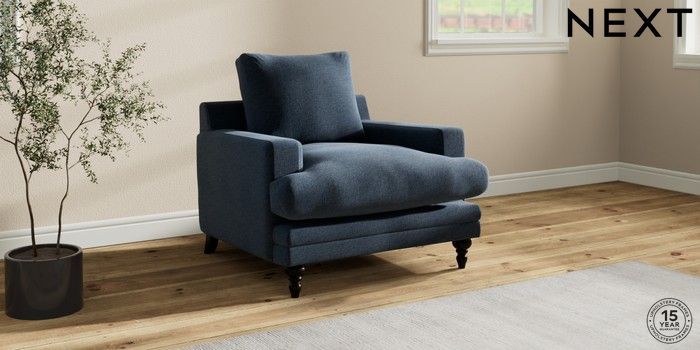 7.0.3 Buy Hutton Deep Relaxed Sit Armchair Ripple Chenille Dark Blue Country Turned - Dark from the Next UK online shop Click here to use our accessible website
