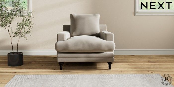 6.12.1 Buy Hutton Deep Relaxed Sit Armchair Ripple Chenille Light Natural Country Turned - Dark from the Next UK online shop Click here to use our accessible website
