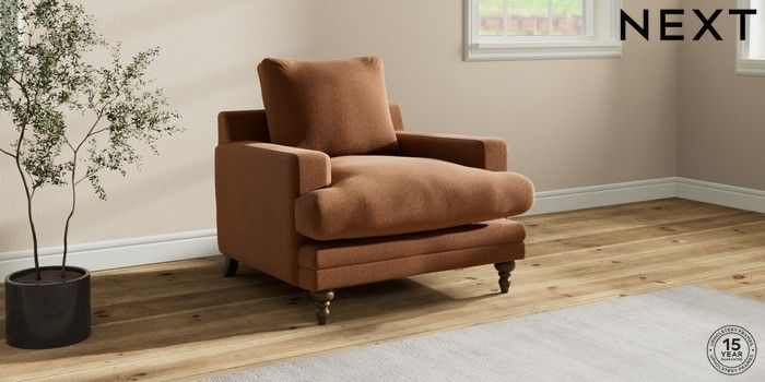 7.0.3 Buy Hutton Deep Relaxed Sit Armchair Ripple Chenille Mid Rust Brown Country Turned - Mid from the Next UK online shop Click here to use our accessible website
