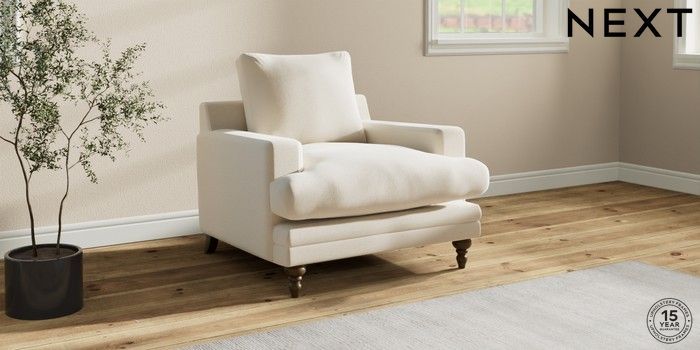 7.0.3 Buy Hutton Deep Relaxed Sit Armchair Ripple Chenille Oyster Country Turned - Mid from the Next UK online shop Click here to use our accessible website