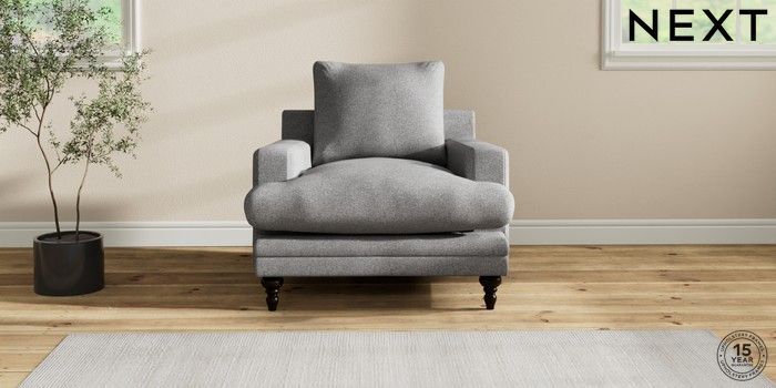 6.12.1 Buy Hutton Deep Relaxed Sit Armchair Studio Chenille Mid Grey Country Turned - Dark from the Next UK online shop Click here to use our accessible website
