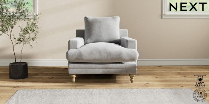 6.12.1 Buy Hutton Deep Relaxed Sit Armchair Tweedy Blend Easy Clean Light Silver Grey Country Turned - Light from the Next UK online shop Click here to use our accessible website