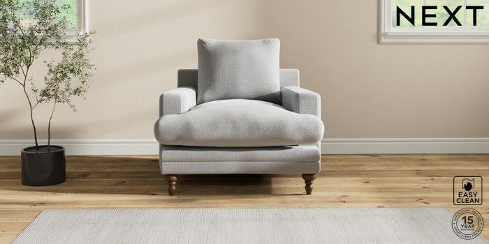 6.12.1 Buy Hutton Deep Relaxed Sit Armchair Tweedy Blend Easy Clean Light Silver Grey Country Turned - Mid from the Next UK online shop Click here to use our accessible website
