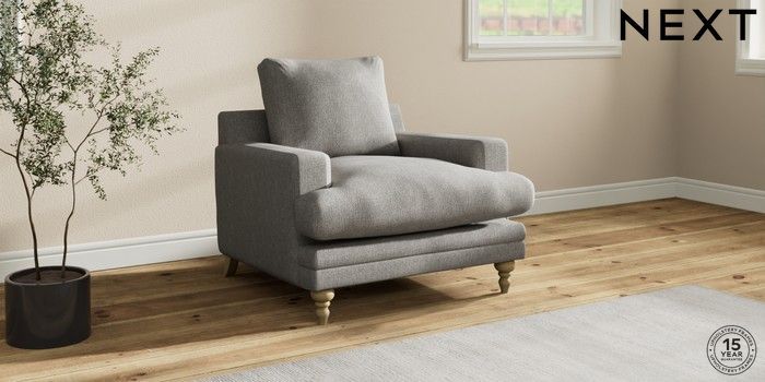 7.0.3 Buy Hutton Deep Relaxed Sit Armchair Tweedy Chenille Mid Grey Country Turned - Light from the Next UK online shop Click here to use our accessible website