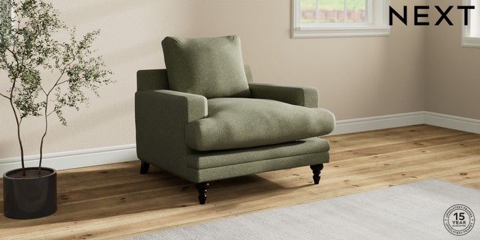 7.0.3 Buy Hutton Deep Relaxed Sit Armchair Tweedy Chenille Mid Moss Green Country Turned - Dark from the Next UK online shop Click here to use our accessible website