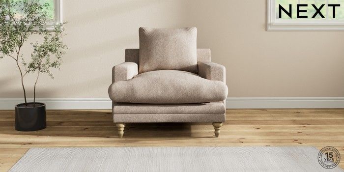 6.12.1 Buy Hutton Deep Relaxed Sit Armchair Tweedy Chenille Mid Natural Country Turned - Light from the Next UK online shop Click here to use our accessible website