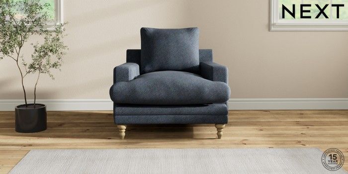 6.12.1 Buy Hutton Deep Relaxed Sit Armchair Tweedy Chenille Navy Blue Country Turned - Light from the Next UK online shop Click here to use our accessible website