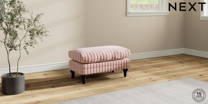 7.0.3 Buy Hutton Deep Relaxed Sit Footstool Bold Chenille Stripe Dark Pink High Turned - Dark from the Next UK online shop Click here to use our accessible website