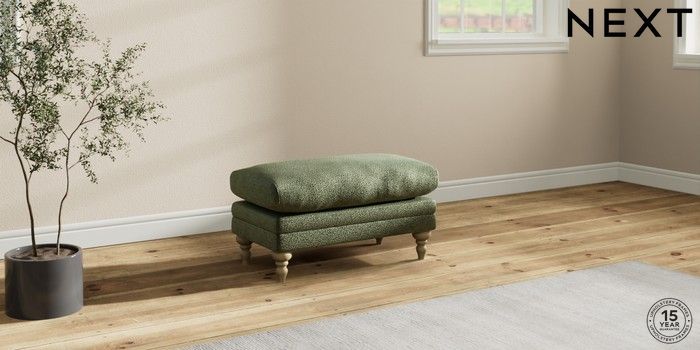 7.0.3 Buy Hutton Deep Relaxed Sit Footstool Boucle Chenille Dark Moss Green High Turned - Light from the Next UK online shop Click here to use our accessible website
