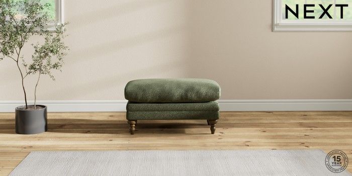 6.12.1 Buy Hutton Deep Relaxed Sit Footstool Boucle Chenille Dark Moss Green High Turned - Mid from the Next UK online shop Click here to use our accessible website