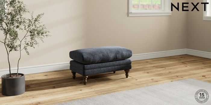 7.0.3 Buy Hutton Deep Relaxed Sit Footstool Boucle Chenille Dark Slate Blue High Turned - Mid from the Next UK online shop Click here to use our accessible website