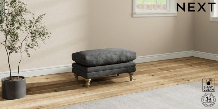 7.0.3 Buy Hutton Deep Relaxed Sit Footstool Boucle Weave Easy Clean Charcoal Grey High Turned - Light from the Next UK online shop Click here to use our accessible website