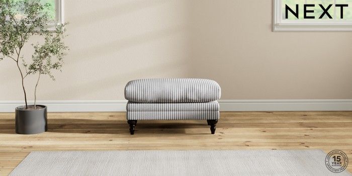 6.12.1 Buy Hutton Deep Relaxed Sit Footstool Chenille Stripe Slate Blue High Turned - Dark from the Next UK online shop Click here to use our accessible website