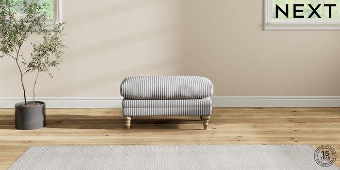 6.12.1 Buy Hutton Deep Relaxed Sit Footstool Chenille Stripe Slate Blue High Turned - Light from the Next UK online shop Click here to use our accessible website