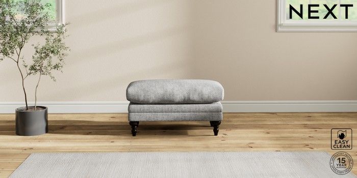 6.12.1 Buy Hutton Deep Relaxed Sit Footstool Chunky Boucle Easy Clean Light Grey High Turned - Dark from the Next UK online shop Click here to use our accessible website