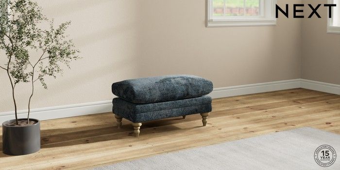 7.0.3 Buy Hutton Deep Relaxed Sit Footstool Chunky Chenille Dark Navy Blue High Turned - Light from the Next UK online shop Click here to use our accessible website