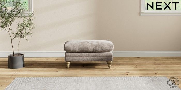 6.12.1 Buy Hutton Deep Relaxed Sit Footstool Chunky Chenille Light Dove High Turned - Light from the Next UK online shop Click here to use our accessible website