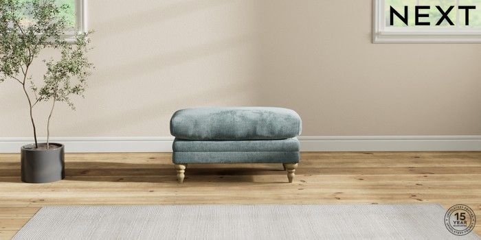 6.12.1 Buy Hutton Deep Relaxed Sit Footstool Chunky Chenille Light Teal Green High Turned - Light from the Next UK online shop Click here to use our accessible website