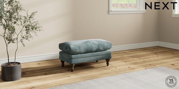 7.0.3 Buy Hutton Deep Relaxed Sit Footstool Chunky Chenille Light Teal Green High Turned - Mid from the Next UK online shop Click here to use our accessible website