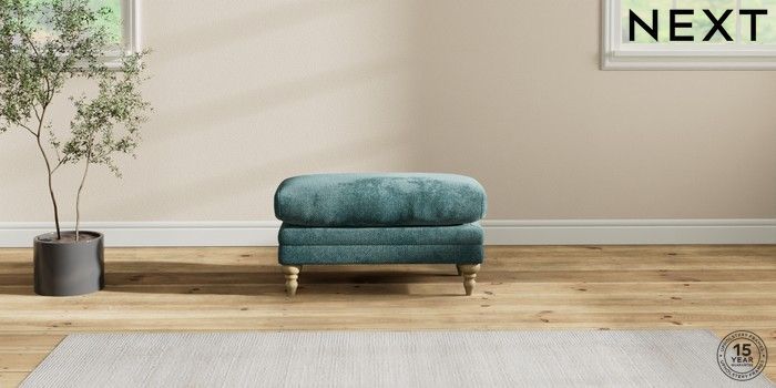 6.12.1 Buy Hutton Deep Relaxed Sit Footstool Chunky Chenille Mid Teal Green High Turned - Light from the Next UK online shop Click here to use our accessible website