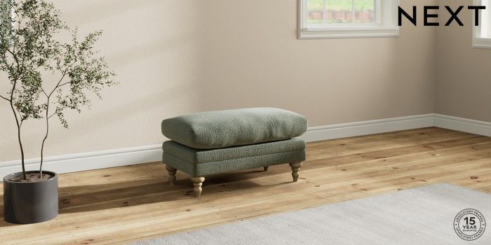 7.0.3 Buy Hutton Deep Relaxed Sit Footstool Chunky Texture Mid Forest Green High Turned - Light from the Next UK online shop Click here to use our accessible website