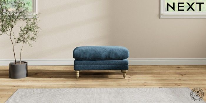 6.12.1 Buy Hutton Deep Relaxed Sit Footstool Cotswold Chenille Dark Blue High Turned - Light from the Next UK online shop Click here to use our accessible website