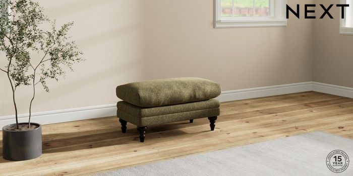 7.0.3 Buy Hutton Deep Relaxed Sit Footstool Cotswold Chenille Dark Green High Turned - Dark from the Next UK online shop Click here to use our accessible website