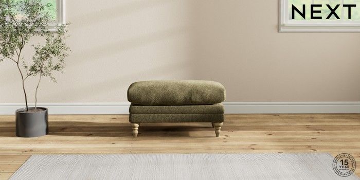 6.12.1 Buy Hutton Deep Relaxed Sit Footstool Cotswold Chenille Dark Green High Turned - Light from the Next UK online shop Click here to use our accessible website