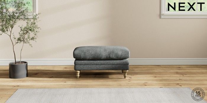 6.12.1 Buy Hutton Deep Relaxed Sit Footstool Cotswold Chenille Dark Grey High Turned - Light from the Next UK online shop Click here to use our accessible website