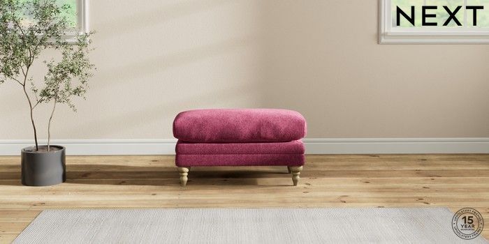 6.12.1 Buy Hutton Deep Relaxed Sit Footstool Cotswold Chenille Dark Raspberry Pink High Turned - Light from the Next UK online shop Click here to use our accessible website
