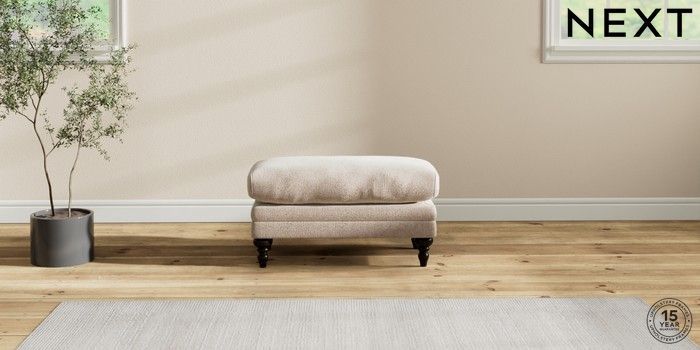 6.12.1 Buy Hutton Deep Relaxed Sit Footstool Cotswold Chenille Light Natural High Turned - Dark from the Next UK online shop Click here to use our accessible website