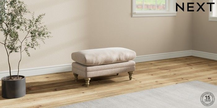 7.0.3 Buy Hutton Deep Relaxed Sit Footstool Cotswold Chenille Light Natural High Turned - Light from the Next UK online shop Click here to use our accessible website