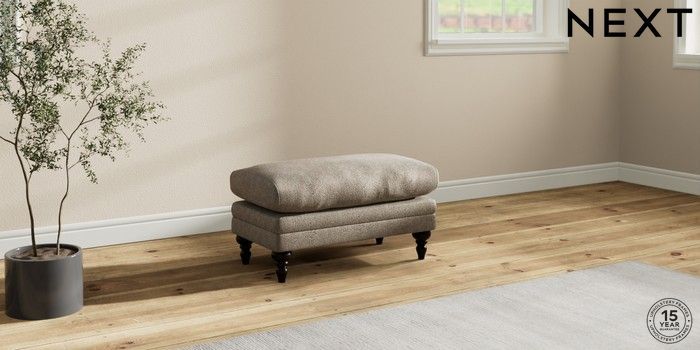 7.0.3 Buy Hutton Deep Relaxed Sit Footstool Cotswold Chenille Mid Mink Brown High Turned - Dark from the Next UK online shop Click here to use our accessible website