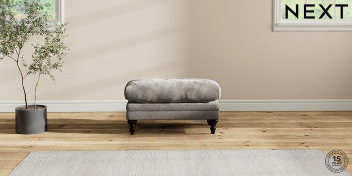 6.12.1 Buy Hutton Deep Relaxed Sit Footstool Distressed Velour French Grey High Turned - Dark from the Next UK online shop Click here to use our accessible website
