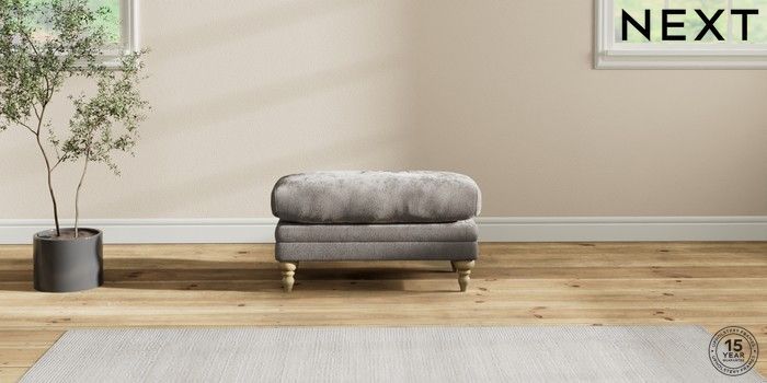 6.12.1 Buy Hutton Deep Relaxed Sit Footstool Distressed Velour French Grey High Turned - Light from the Next UK online shop Click here to use our accessible website